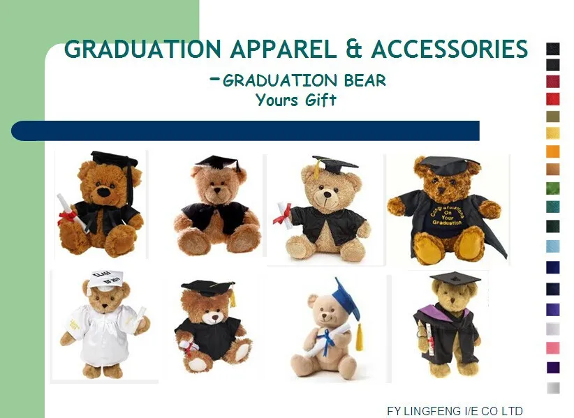 | Packaging Details: | 50SETS Graduation Bear in a 50CM x 45CM x 27CM carton In a 50CM x 45CM x 27CM carton for GraduationTeddy bear with cap gown and glasses |